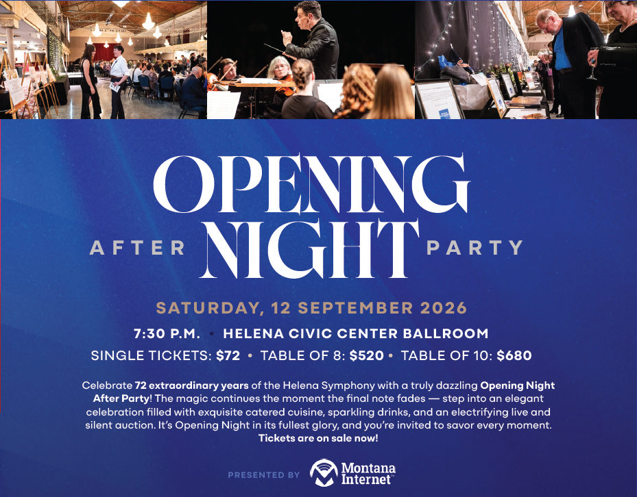 Celebrate 72 extraordinary years of the Helena Symphony with a truly dazzling Opening Night After Party! The magic continues the moment the final note fades. Step into an elegant celebration filled with catered cuisine, sparkling drinks, and a live and silent auction.